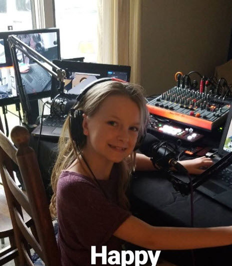 Bethany sitting in "Blackman" (Broadcast Control Room #2 named after Bruce Blackman, daddy's coolest TV production teacher.) running the board and actin like the star of Happy Television.